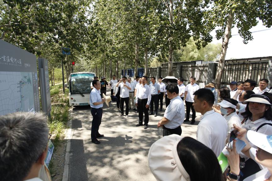 根据主题教育工作安排和集团党委年度计划,当日下午,水投集团党委书记、董事长霍连明同志带领本部党员,冒着酷暑、顶着烈日,来到主题教育第一批现场教学点——北京温榆河公园朝阳示范区参观学习。