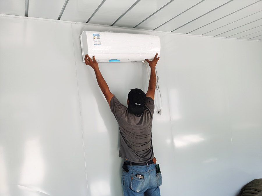 8月25日,为受灾村民临时安置房购置并安装9台空调,满足受灾村民临时住所的制冷、采暖需要。