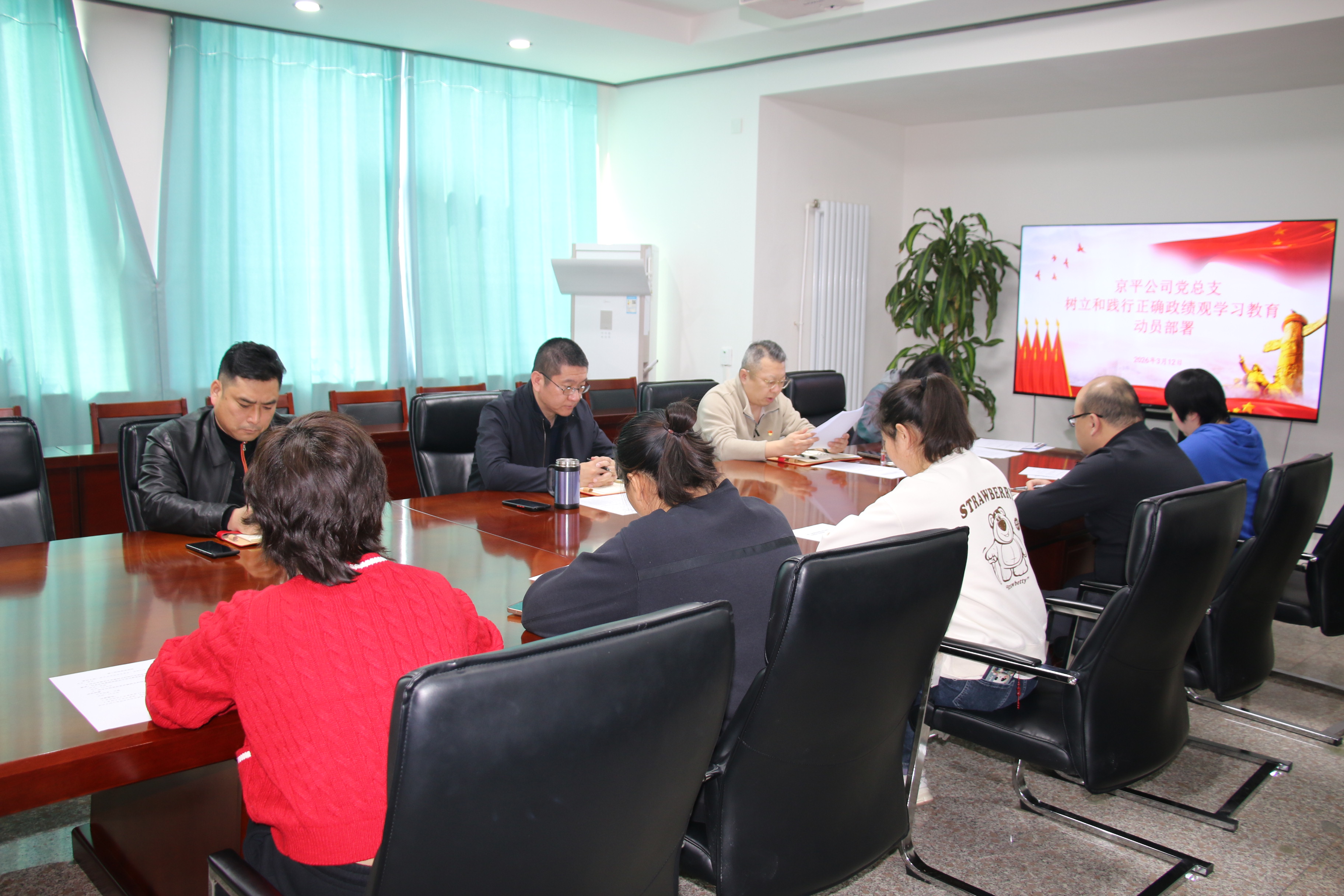3月12日上午,京平公司召开总支委会,动员部署树立和践行正确政绩观学习教育。党总支书记、董事长刘巍同志作公司开展树立和践行正确政绩观学习教育的动员部署。党总支副书记、总经理张建同志传达市委及水投集团党委关于开展树立和践行正确政绩观学习教育的部署要求。京平公司领导班子、各部门负责人、各党支部书记、委员参加。